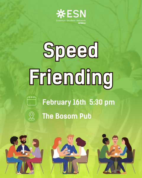 Únete a ESN Urbino para un evento de Speed Friending divertido y amigable, ¡la manera perfecta de romper el hielo y comenzar tu aventura Erasmus de la mejor forma!